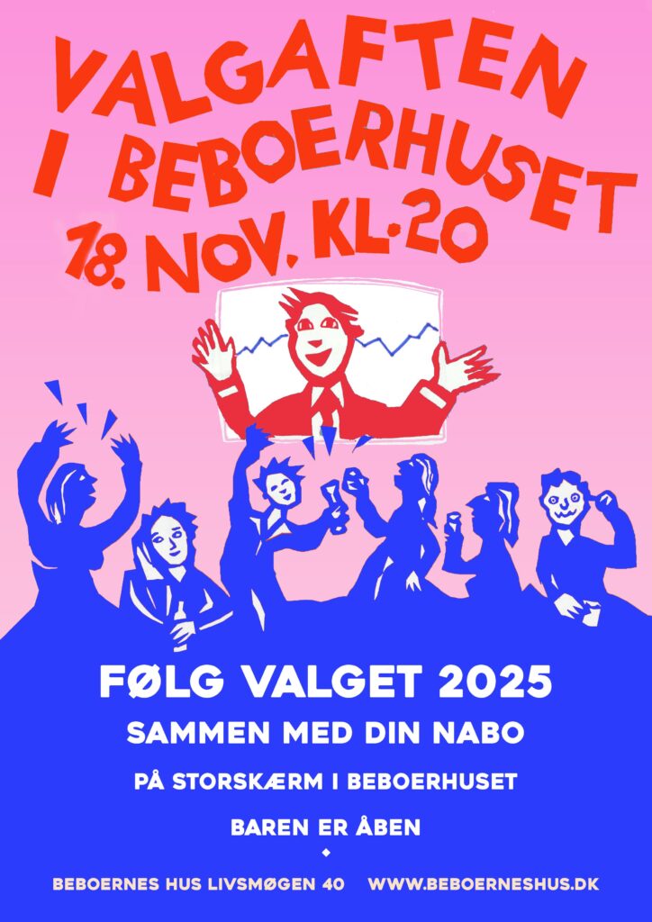 Kom og se valgresultaterne komme ind live sammen med dine naboer. En hyggelig aften i Beboernes Hus.